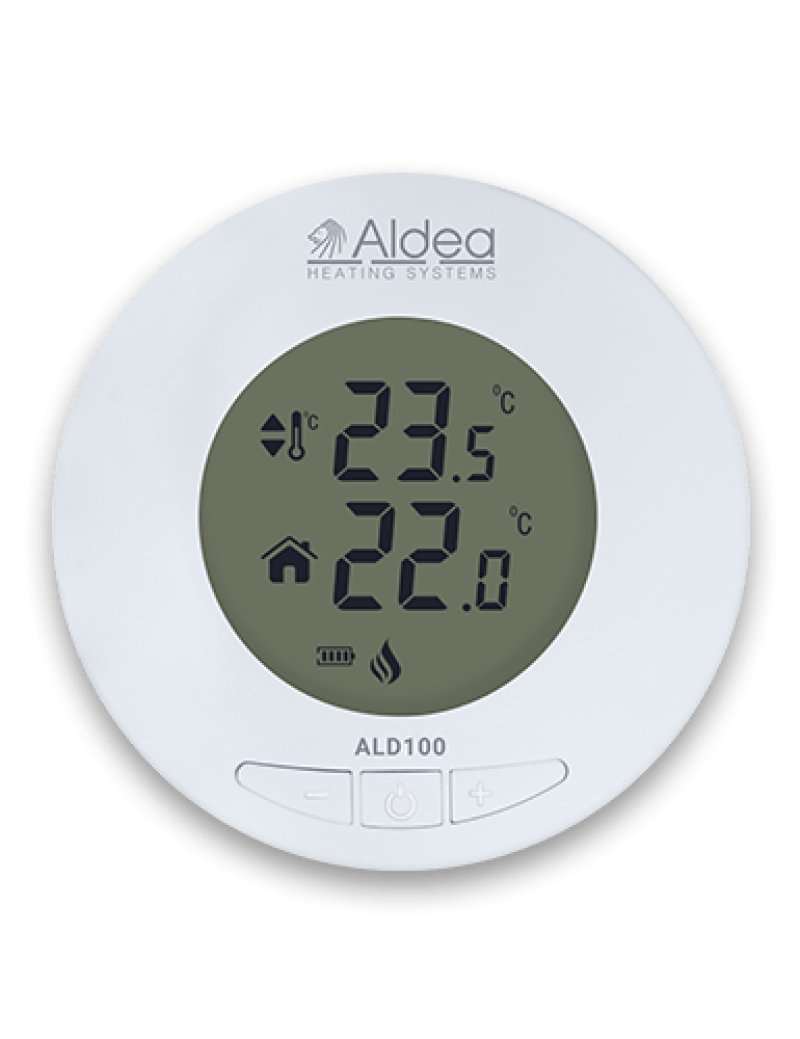 Aldea ALD100 oda termostatı, kurulumu ve kullanımı son derece kolay olan ve bir ısıtma sisteminde enerji verimliliğini en yüksek noktaya getiren bileşendir.