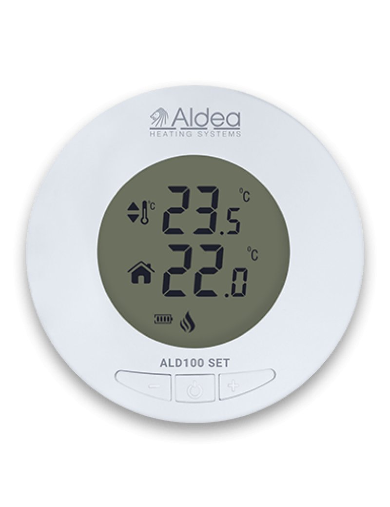 Aldea ALD100 SET kablosuz oda termostatı, kurulumu ve kullanımı son derece kolay olan ve bir ısıtma sisteminde enerji verimliliğini en yüksek noktaya getiren bileşendir.